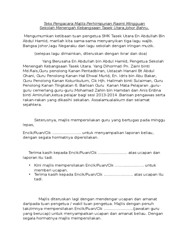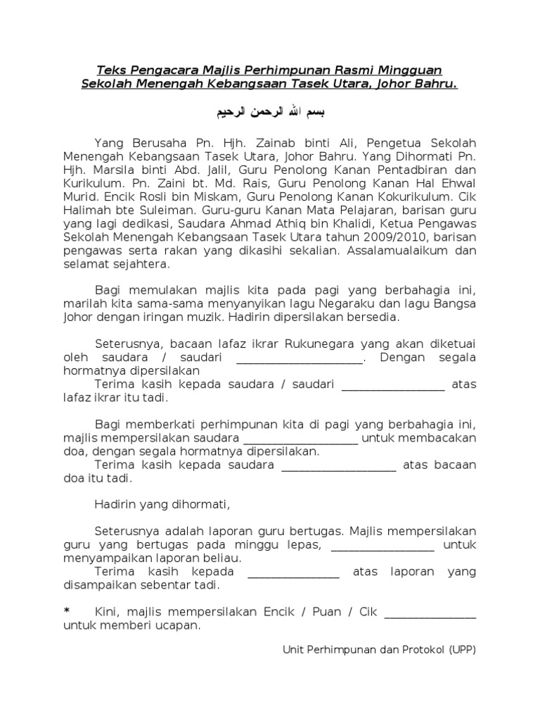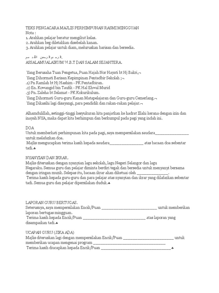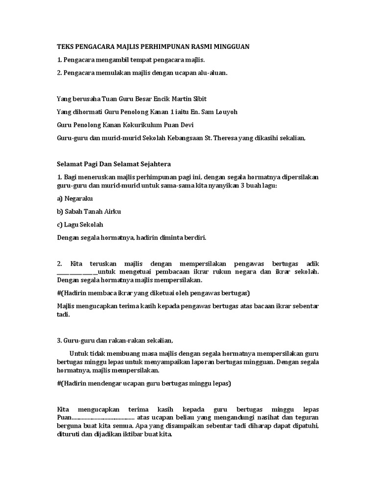 Teks Pengacara Majlis Perhimpunan Rasmi Mingguan Pdf