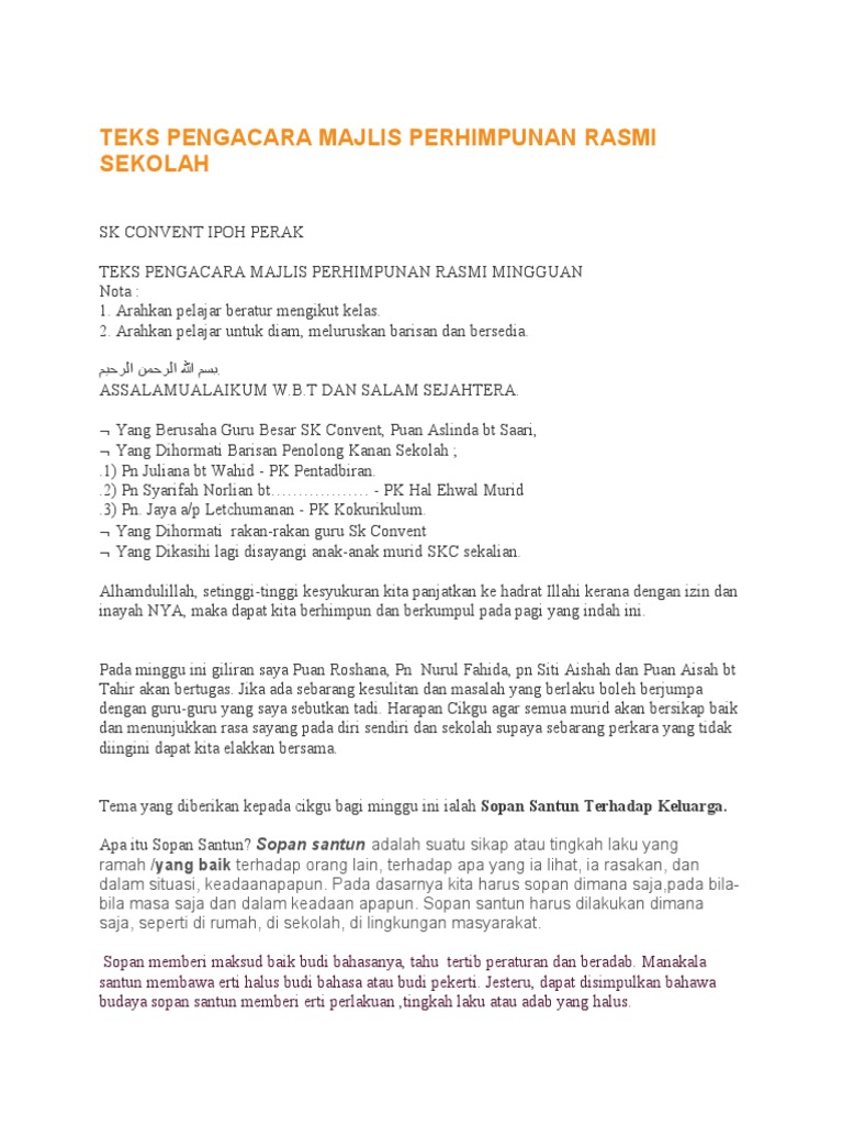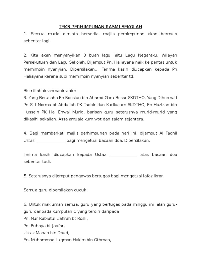 Teks Perhimpunan Rasmi Sekolah Pdf