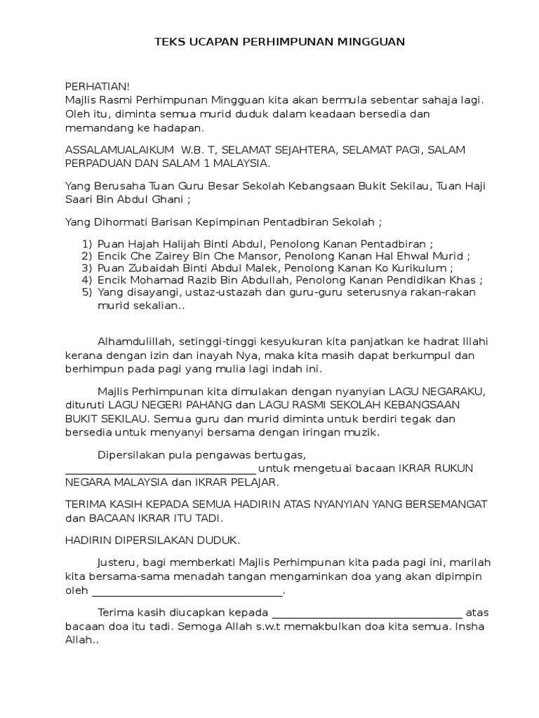 Teks Ucapan Perhimpunan Mingguan Pdf