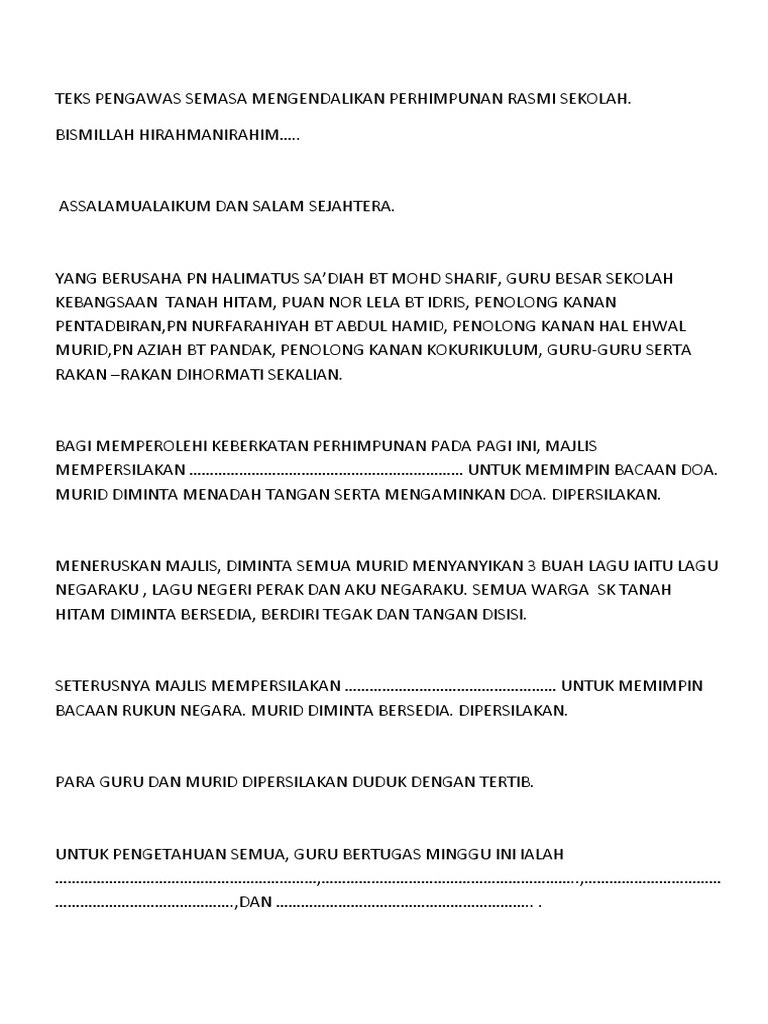 Teks Majlis Perhimpunan Sekolah dalam Bahasa Inggeris. Berikan arahan baris Baris sedia Senang Diri. So this tool was designed for free download documents from the internet.
